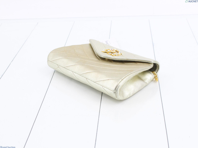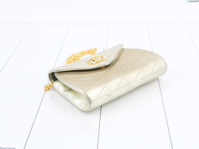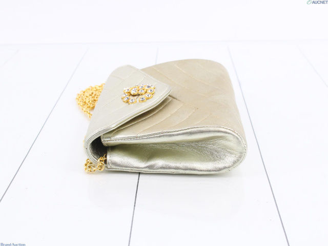 シャネル バイアス ラインストーン ラムスキン チェーン ショルダー バッグ