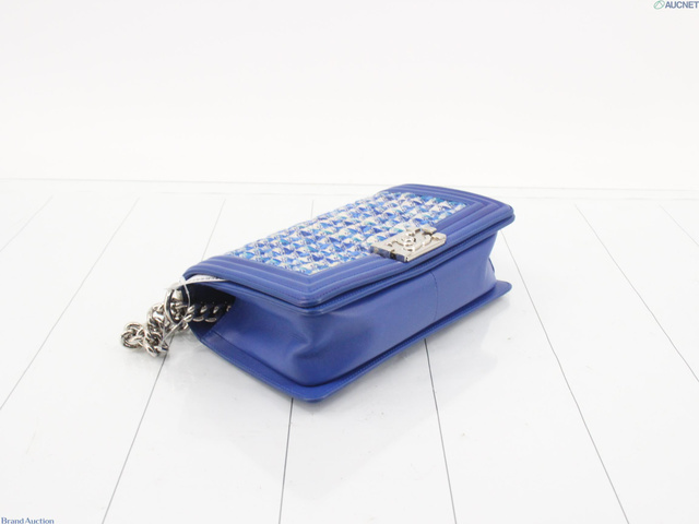 ボーイシャネル ツイード レザー チェーンショルダー ブルー