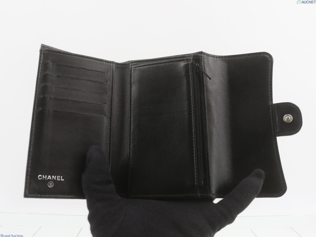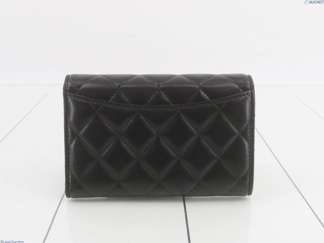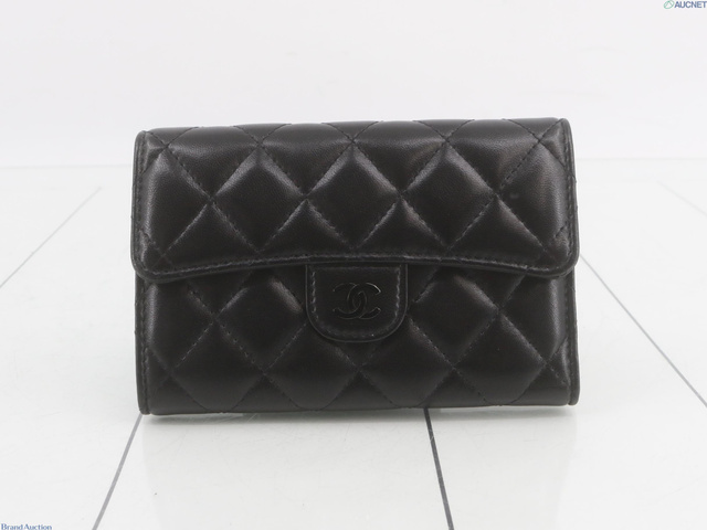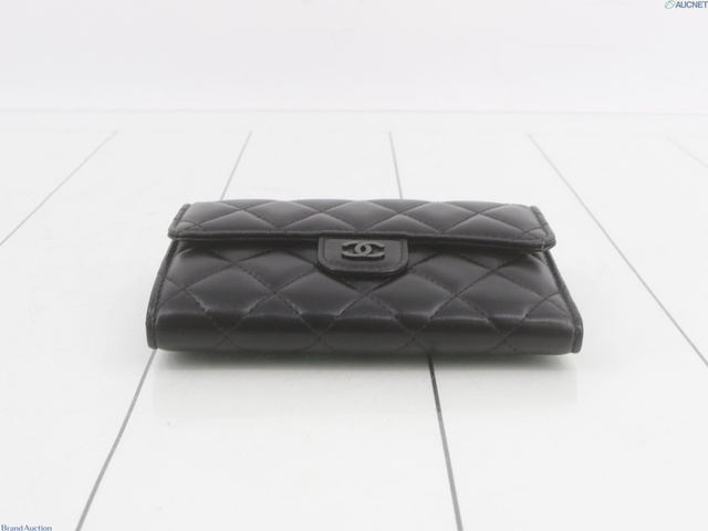 マトラッセ三つ折り財布 ラムスキン 黒