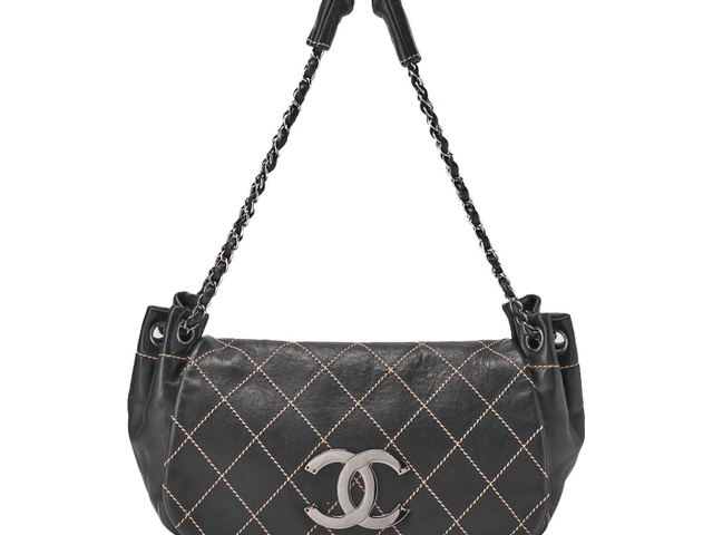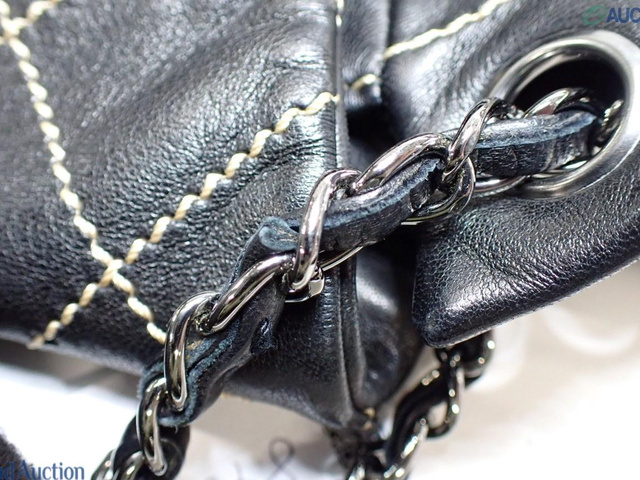 ラムスキン ワイルドステッチ ココマーク チェーンショルダー 黒