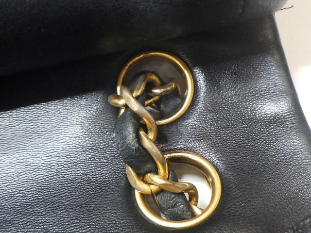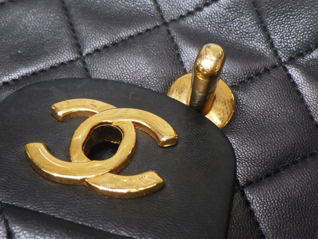 ラムスキン マトラッセ23cm Wフラップ チェーン ブラック