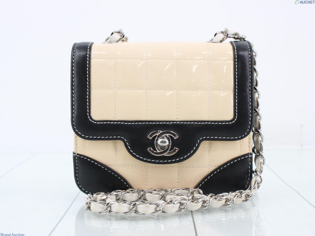 チョコバー チェーンショルダーバッグ パテント ベージュ 6番台