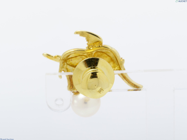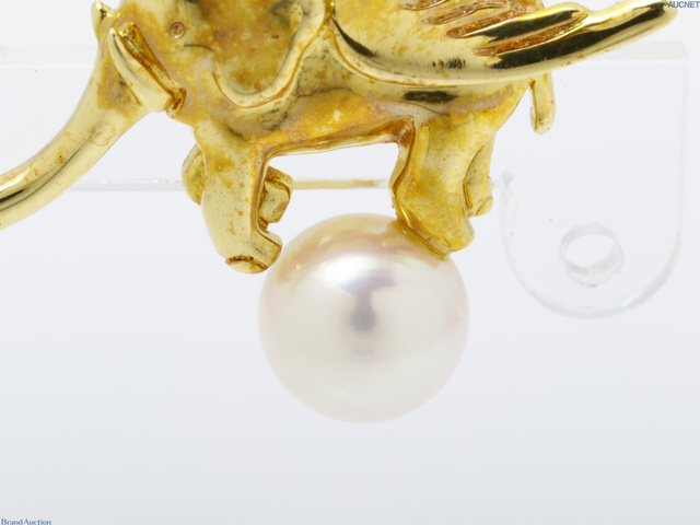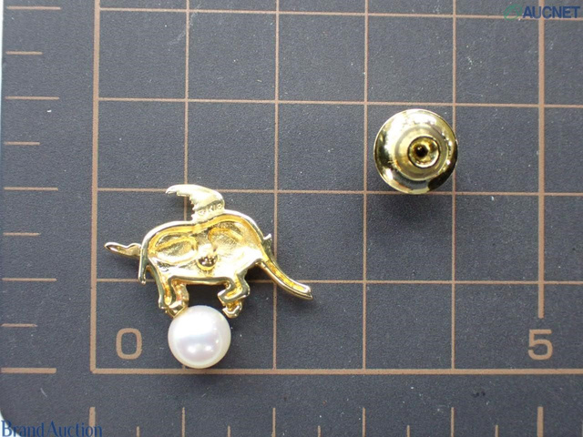 ネクタイピン K18YG 象 アコヤパール約6.7mm 3.0g(キャッチ除く)