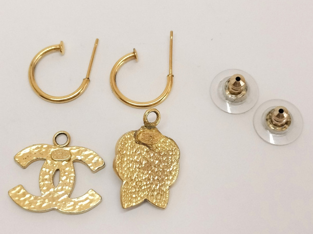 ココ カメリア ブラック ゴールド ピアス