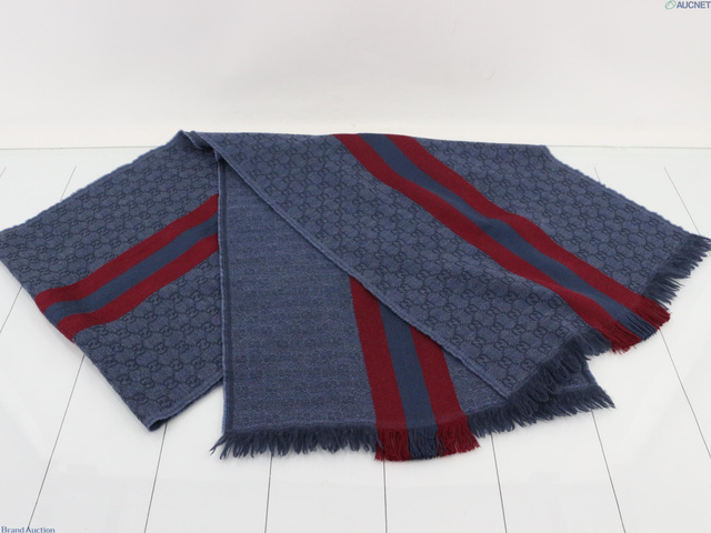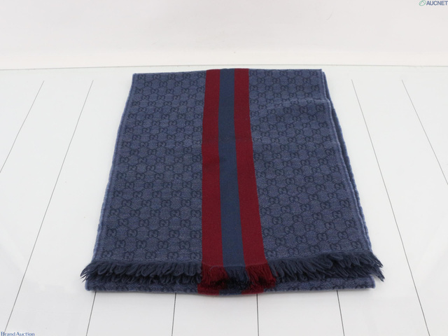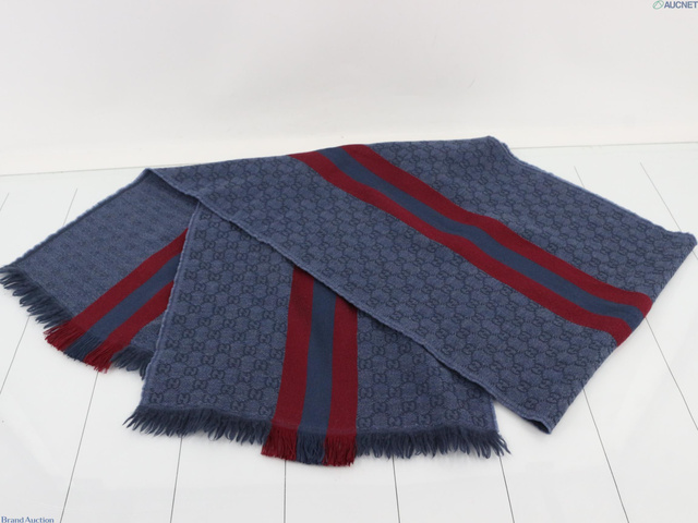 新タグ GG柄 マフラー 真ん中シェリー ブルー