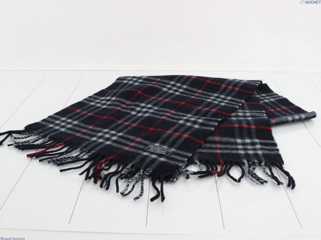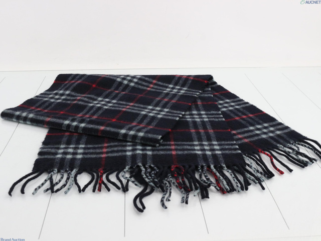 ノバチェック マフラー ネイビー カシミヤ100%v