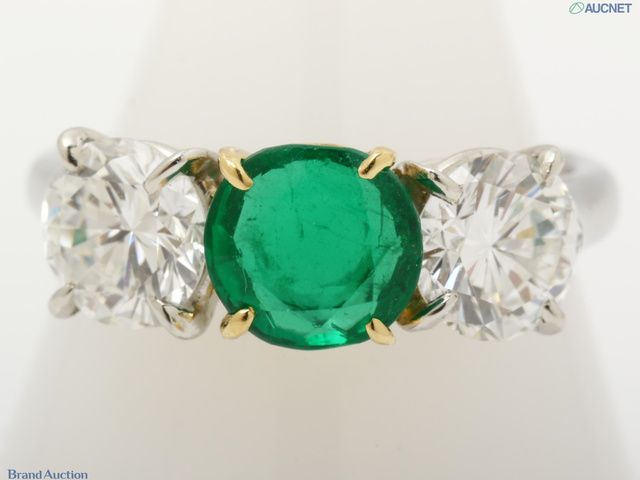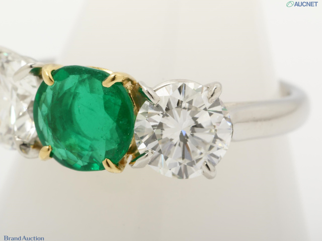 PT950 エメラルドダイヤリング 4.2g E6.5mm D6.0mm #9