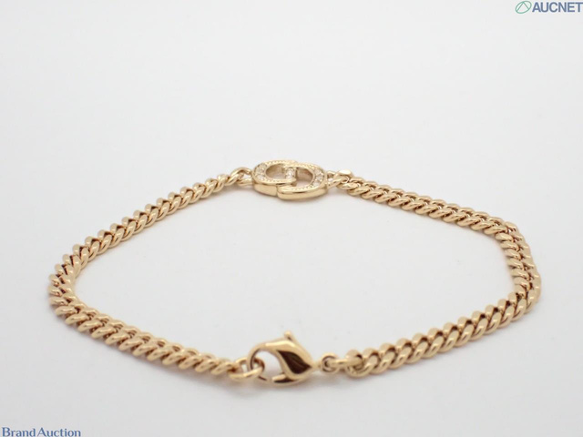 CDロゴ ラインストーン ゴールド ブレスレット 腕周り約18cm