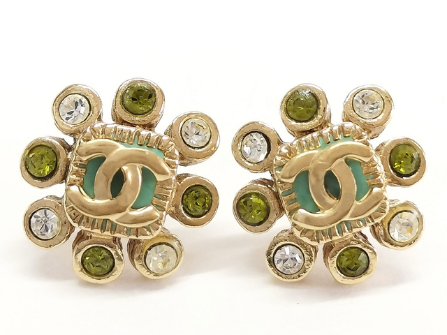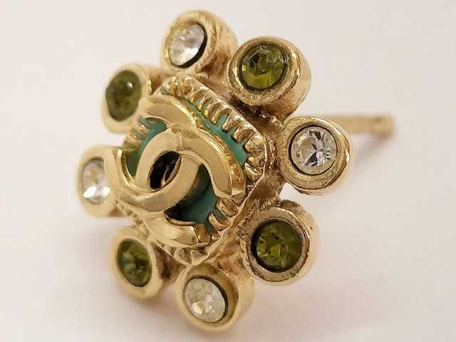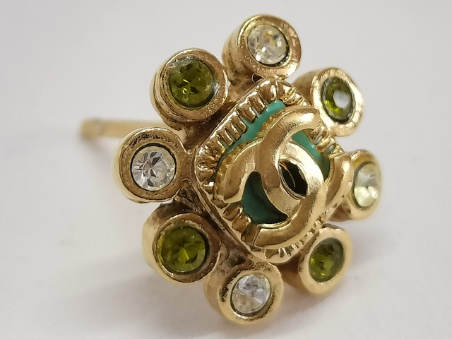 ココ ラインストーン ゴールド ピアス