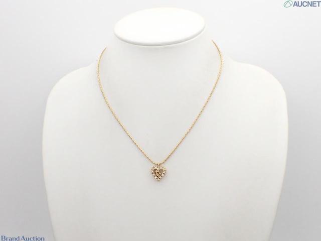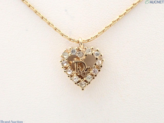 ロゴ ハート ラインストーン ゴールド ネックレス チェーン約42cm