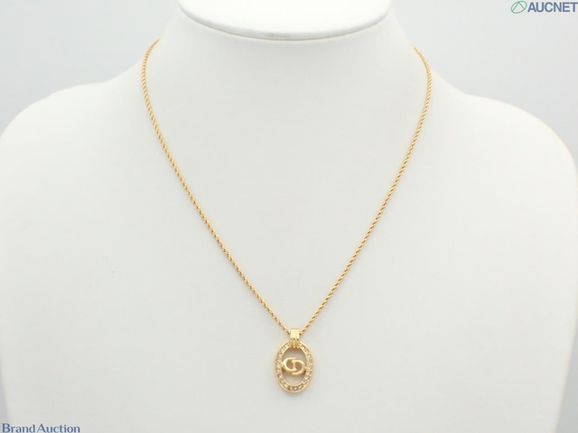 CDロゴ ラインストーン ネックレス ゴールド