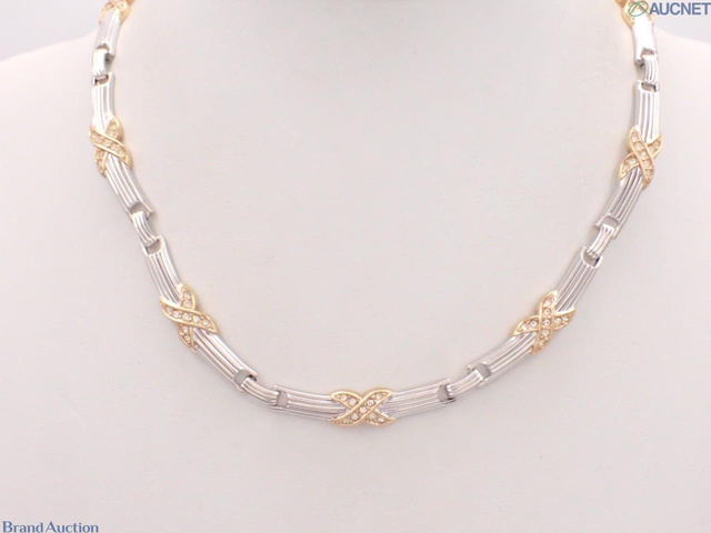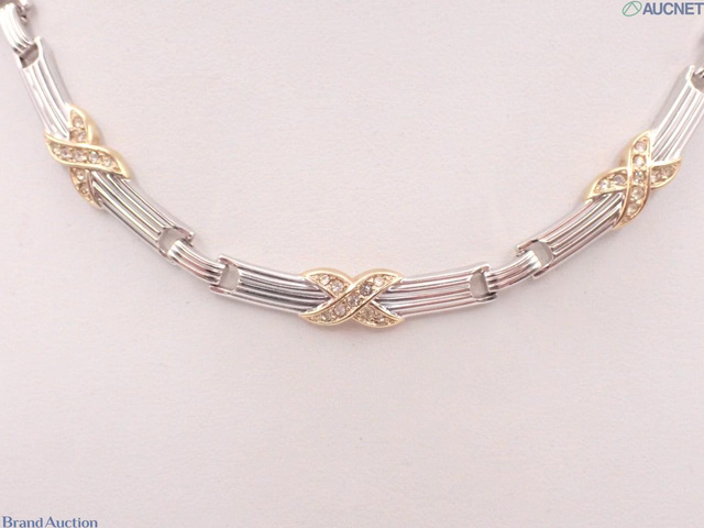 ラインストーン ネックレス ゴールド×シルバー 925