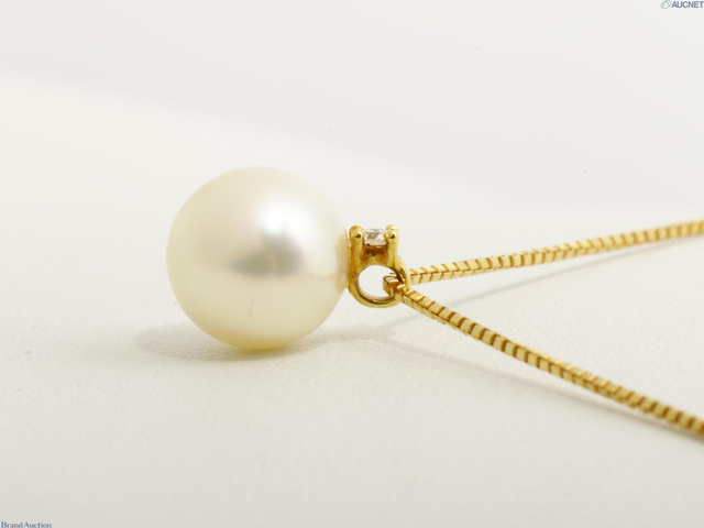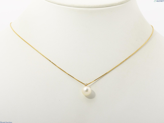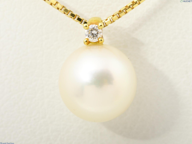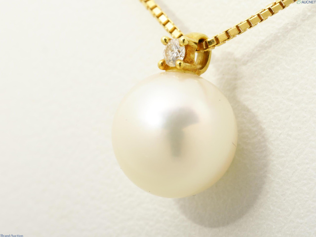 K18YG パールダイヤネックレス D0.01 2.55g 40cm