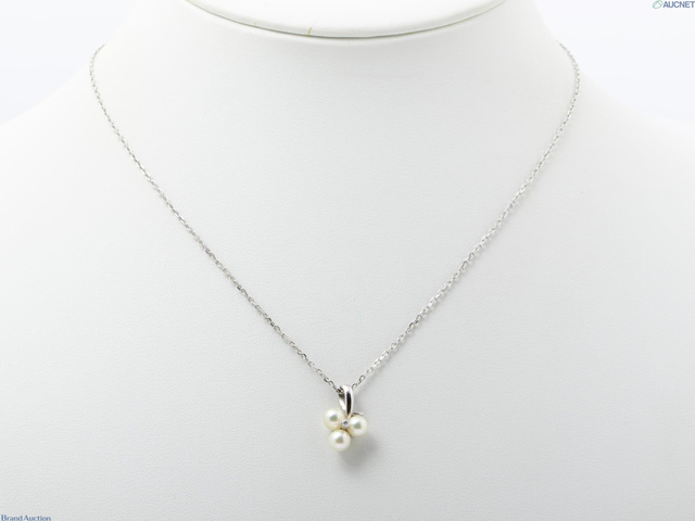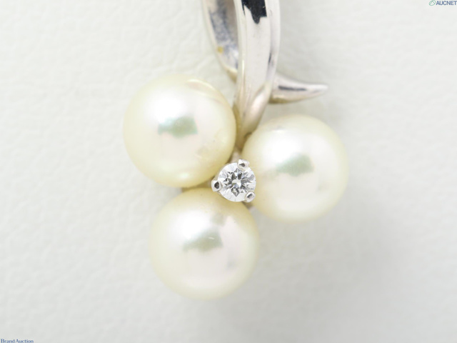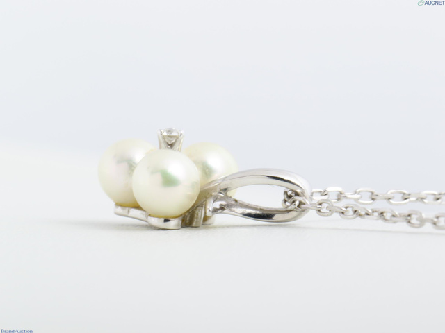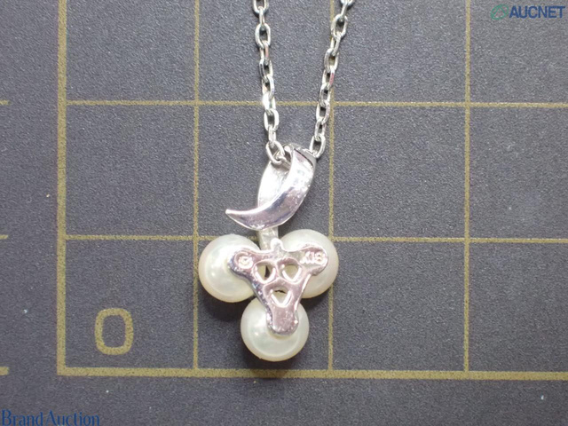K18WG ネックレス 3.4g アコヤパール 約4.8-5.0mm ダイヤ