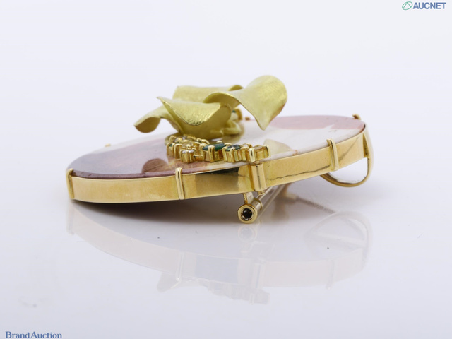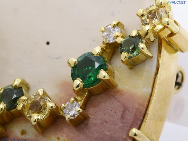 友安昭 ブローチ 色石 G0.65 D0.25 S0.50 K18YG