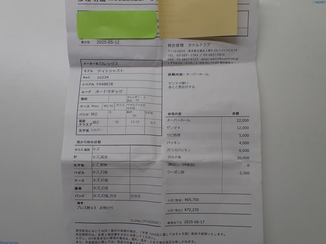 16234 Y番 稼働 自動巻き