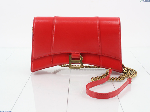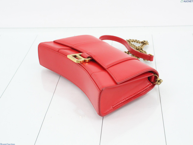 アワーグラス レザー チェーンショルダーバッグ レッド