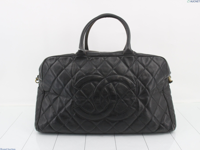 キャビアスキン マトラッセ ブラック ビッグ ボストンバッグ G金具 シールあり