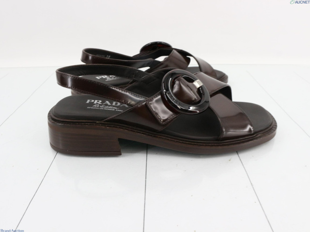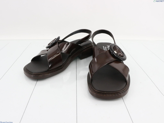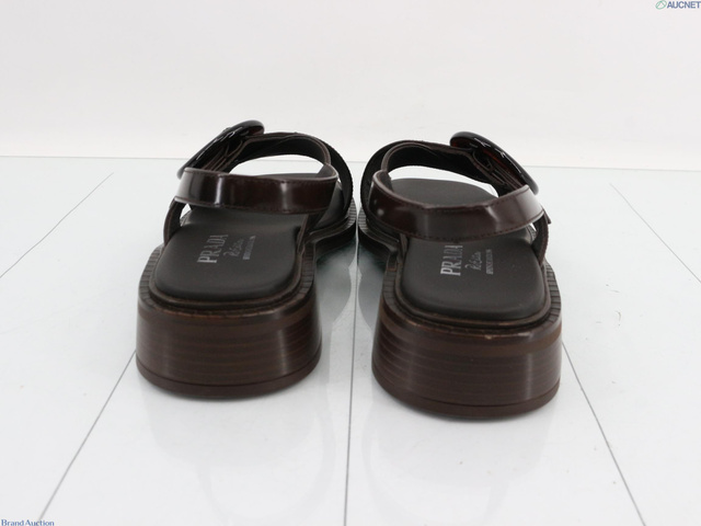 2025新作 ブラッシュドレザー バックル付き サンダル 39 ダークブラウン