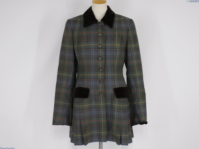 ロエベ レザー 裏地チェックコート サイズ52