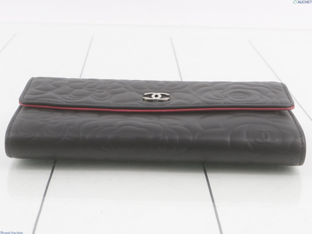 シャネル カメリア フラップウォレット 長財布 ココマーク ブラック