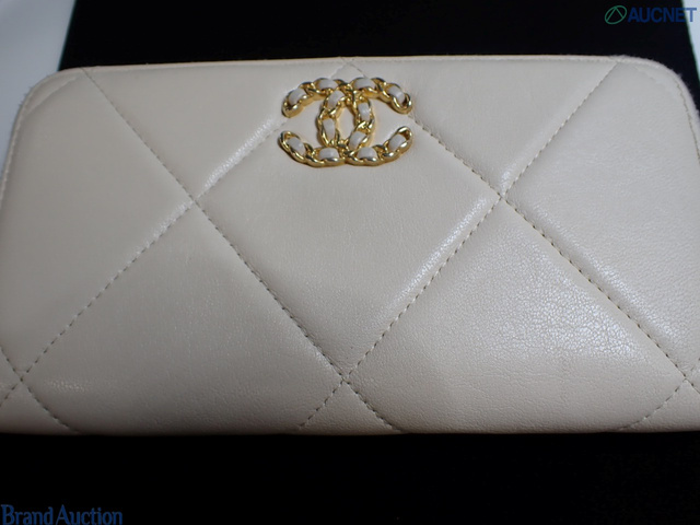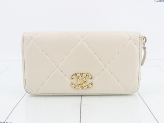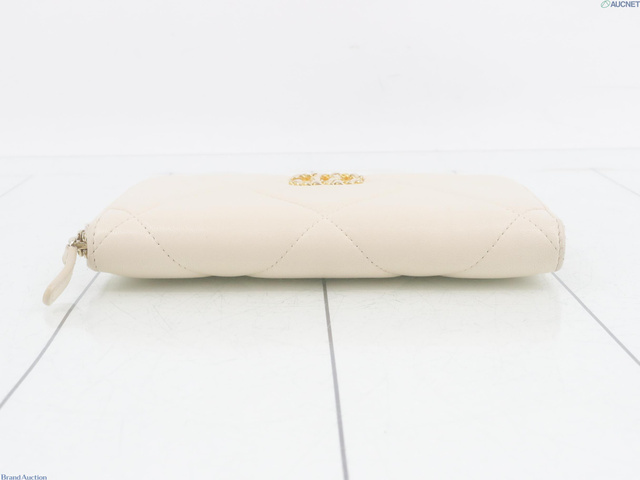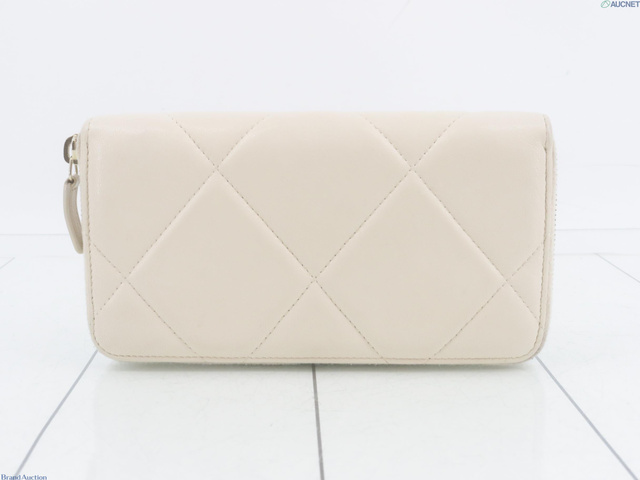 シャネル19 ラウンドファスナー長財布 ホワイト系