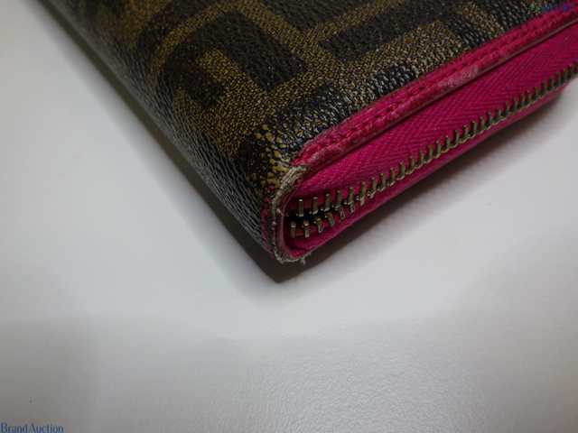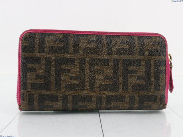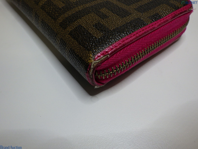 ズッカ ラウンドファスナー 長財布 ブラウン×ピンク