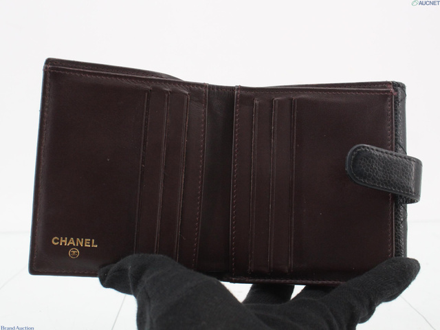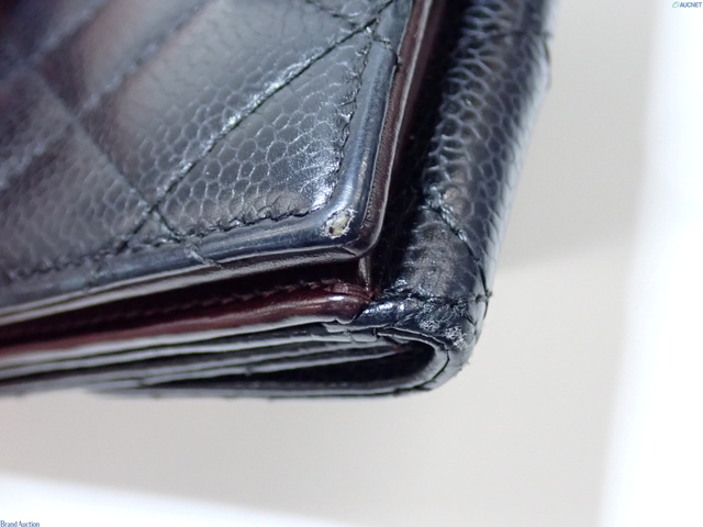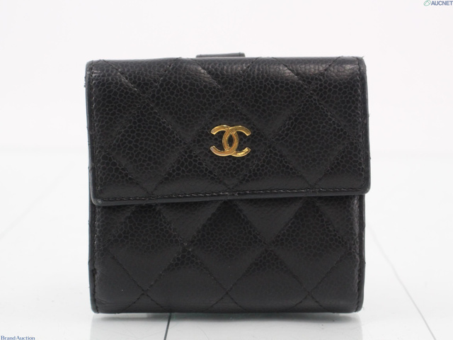 シャネル キャビアスキン 折り財布 黒
