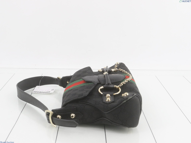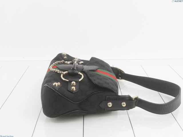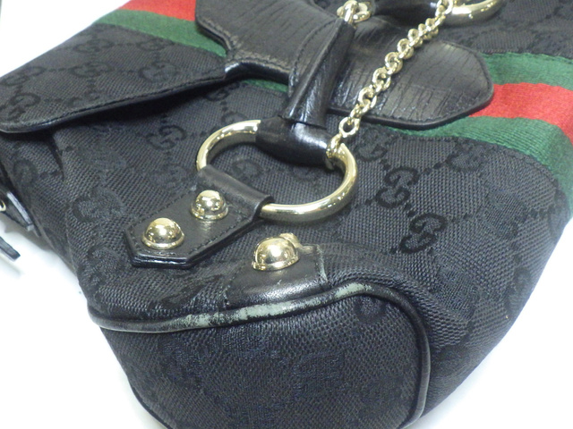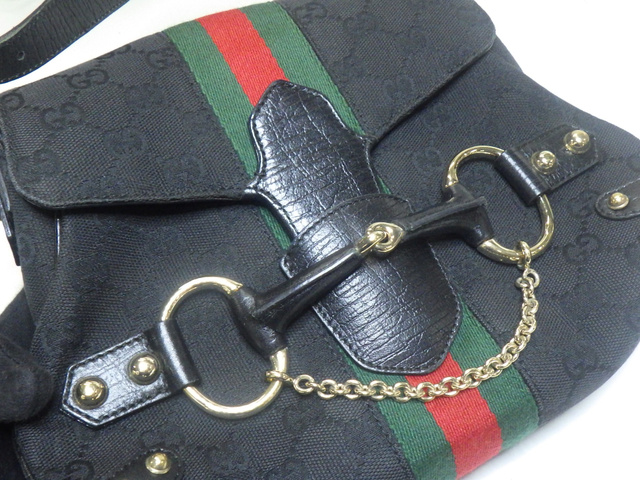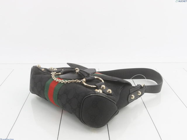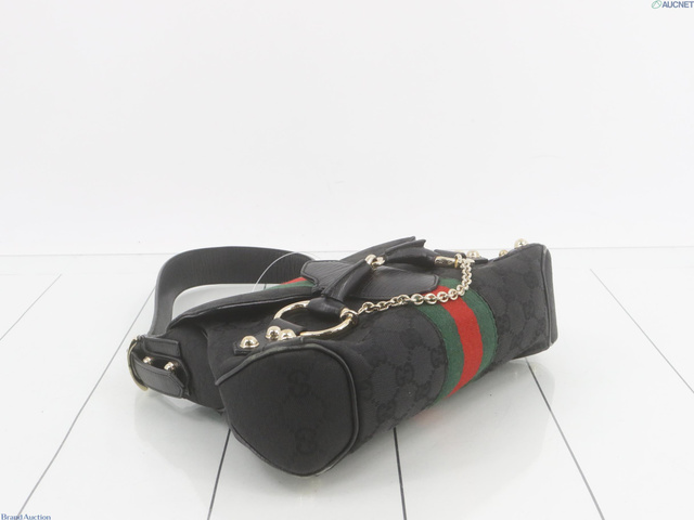 GGキャンバス ホースビット ワンショルダー ハンドバッグ 黒