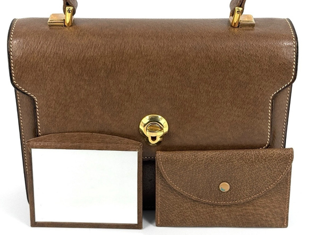 Gucci ハンドバッグ ブラウンレザー ミラー付き