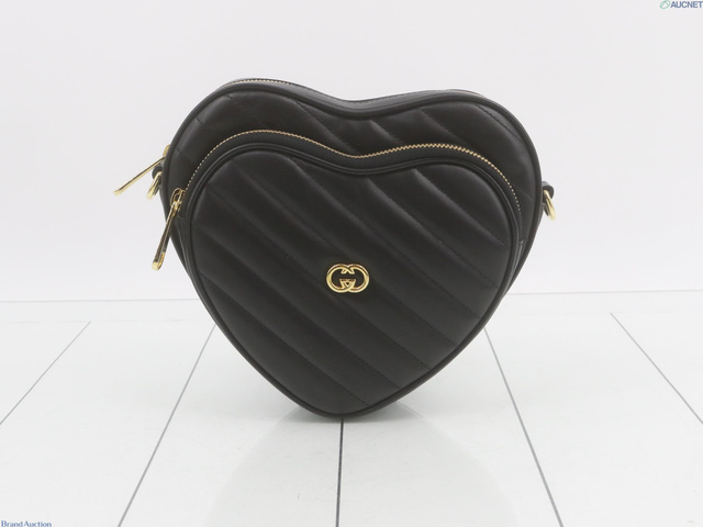 グッチ GGマーモント ハートモチーフ ショルダーバッグ カーフ ブラック