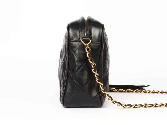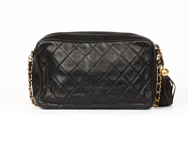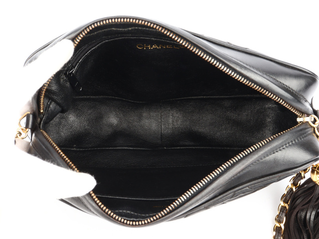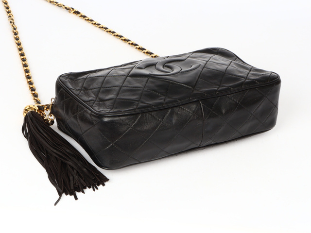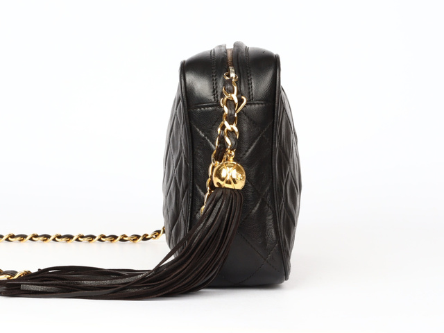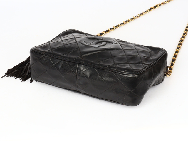 マトラッセ ココマーク フリンジ シングルチェーンショルダー ラム 黒 3番台