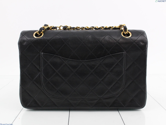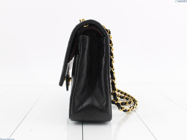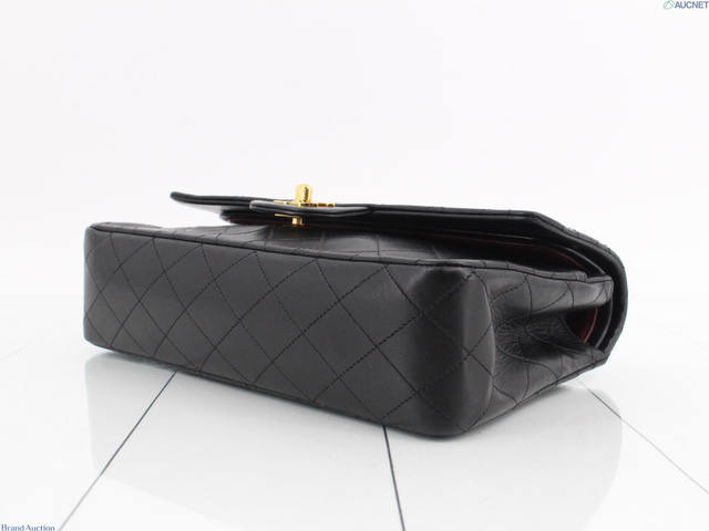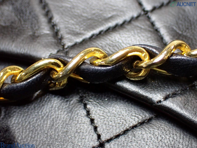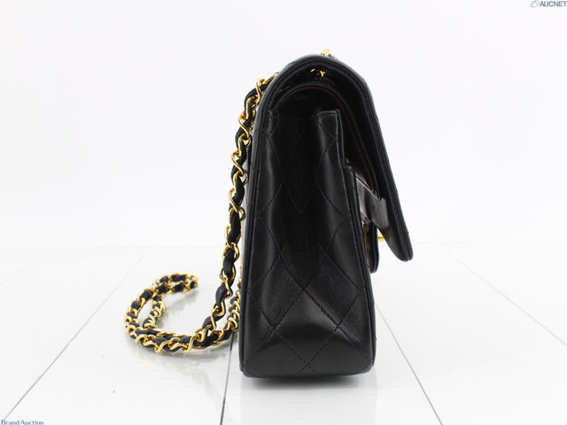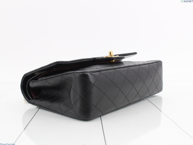Wフラップ ラムスキン マトラッセ ショルダーバッグ ブラック