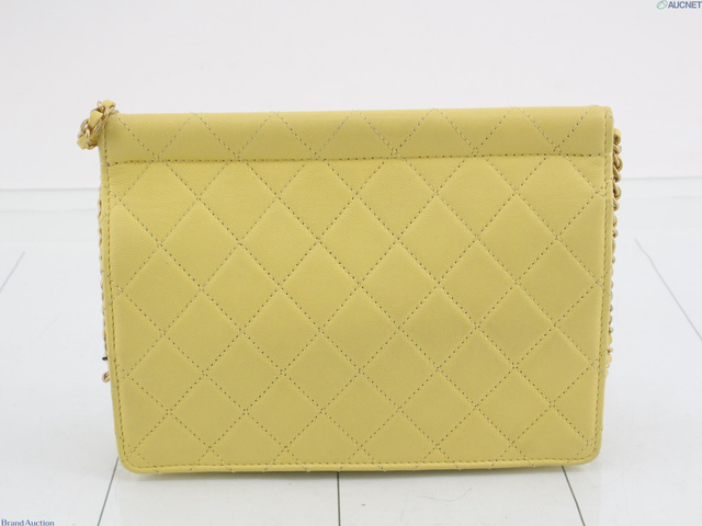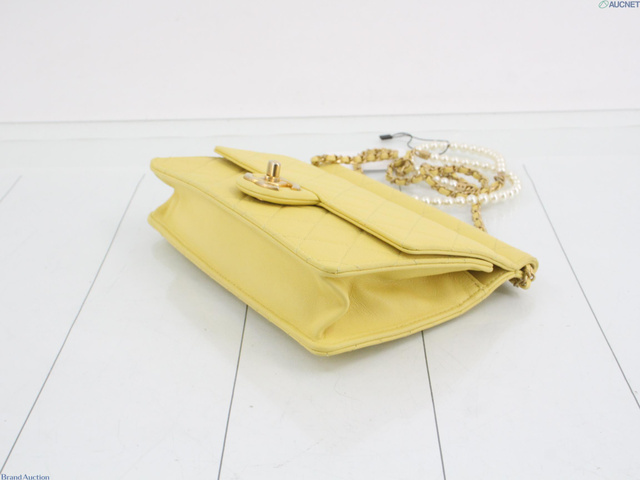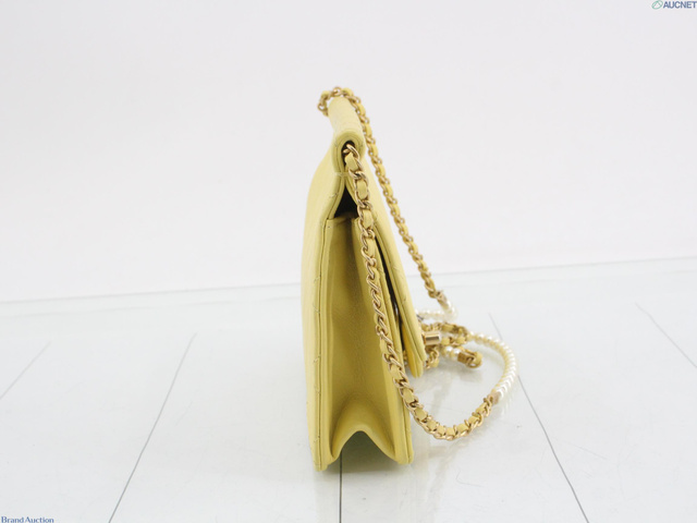 レザー ココマーク パールチェーンショルダー イエロー