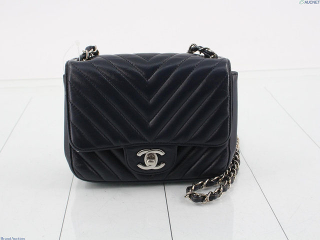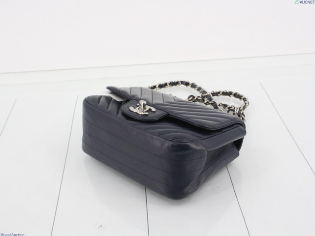 Vステッチ キャビアスキン チェーンショルダー