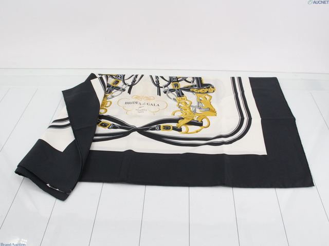 カレ90 BRIDES de GALA シルク スカーフ ホワイト×ブラック