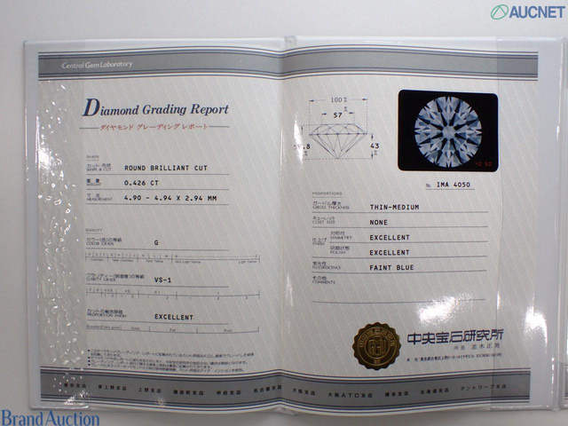 Pt900 ダイヤモンドリング 0.426ct G VS1 3EX FB
