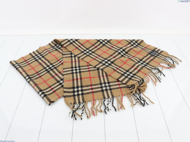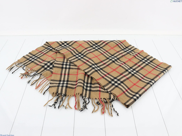 ノバチェック マフラー ベージュ ウール100%