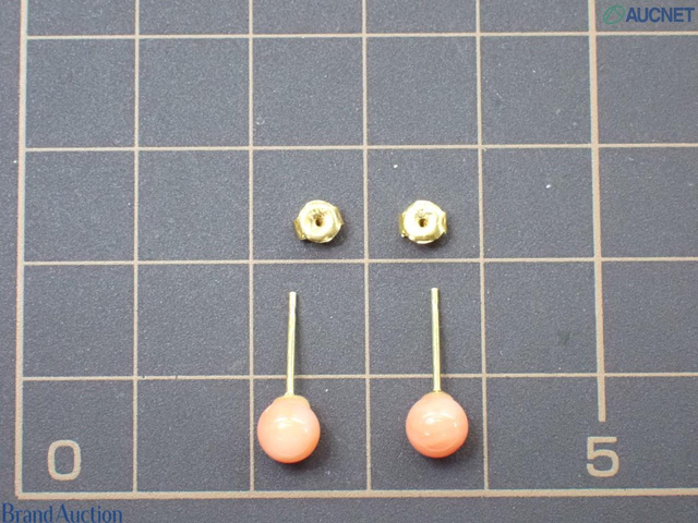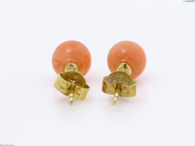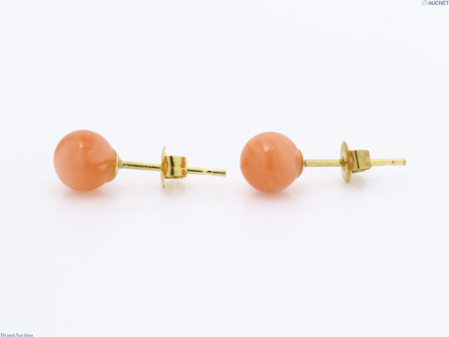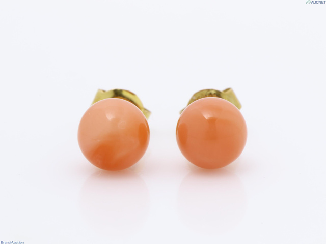 珊瑚 ピアス K18保証 珊瑚約5.3mm 0.6g