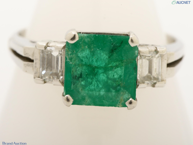 約Pt48%/Pt49% エメラルド リング E1.44ct 0.32ct
