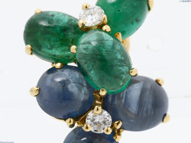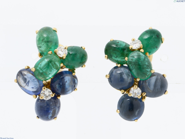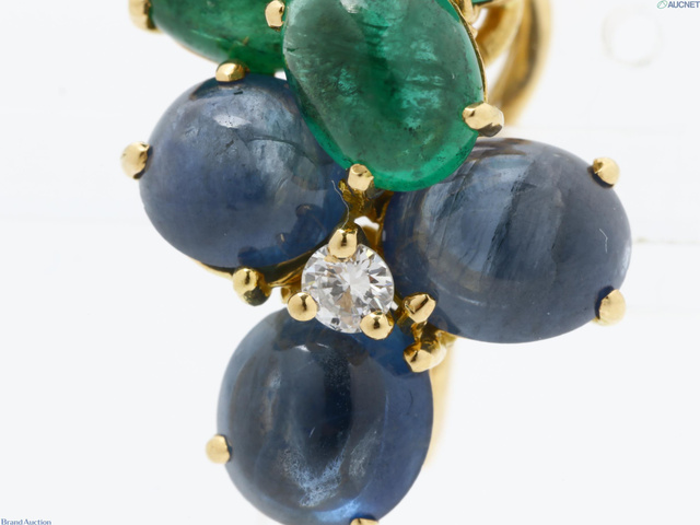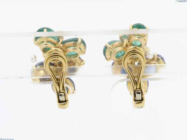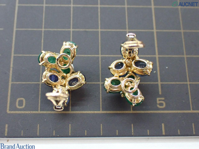 750 エメラルド/サファイア/ダイヤイヤリング 9.7g