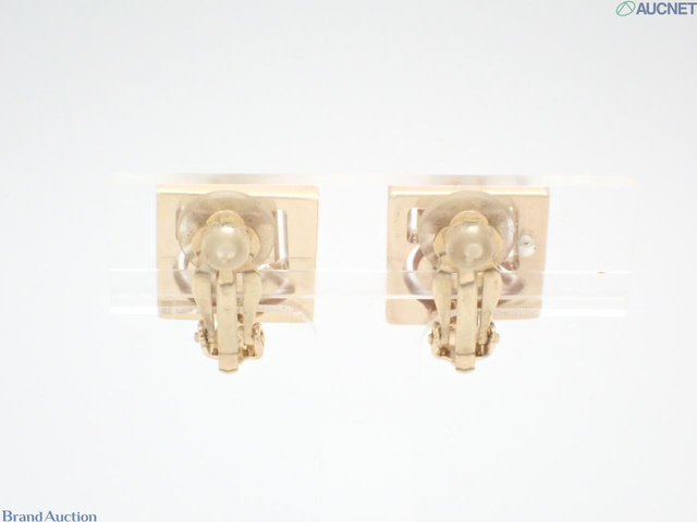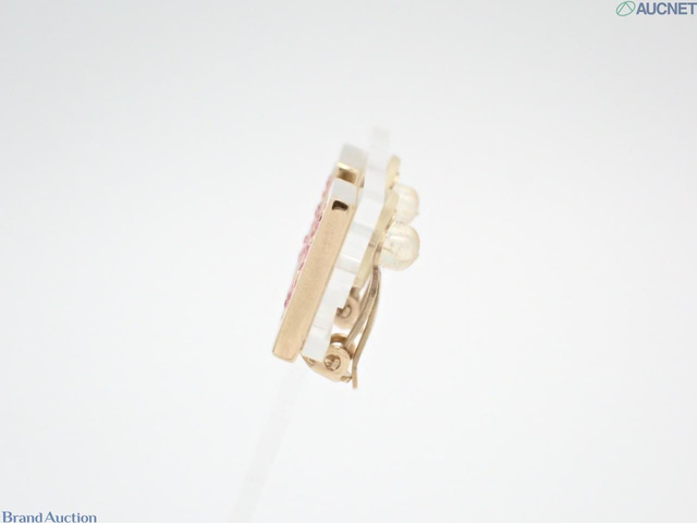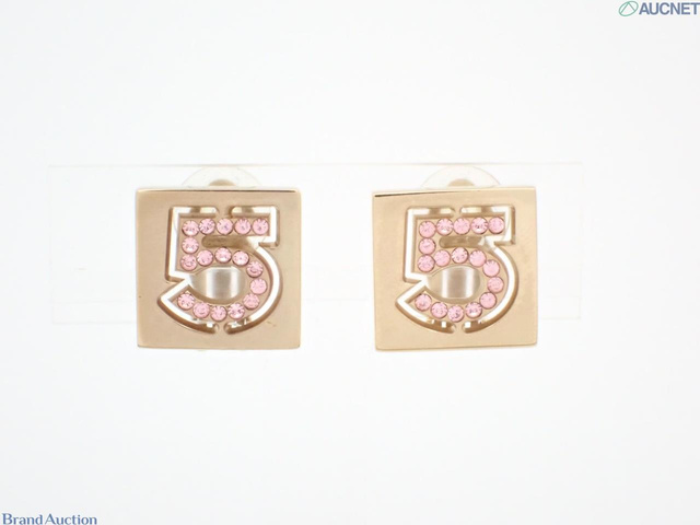 ゴールド色イヤリング スクエア 5 ピンクラインストーン入り