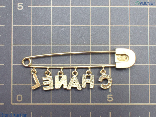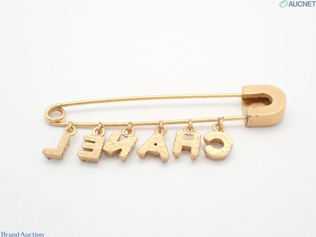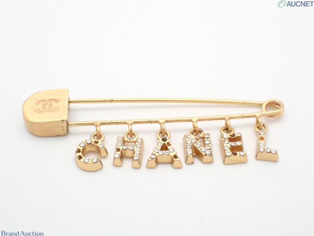 CHANELロゴラインストーン安全ピンブローチ