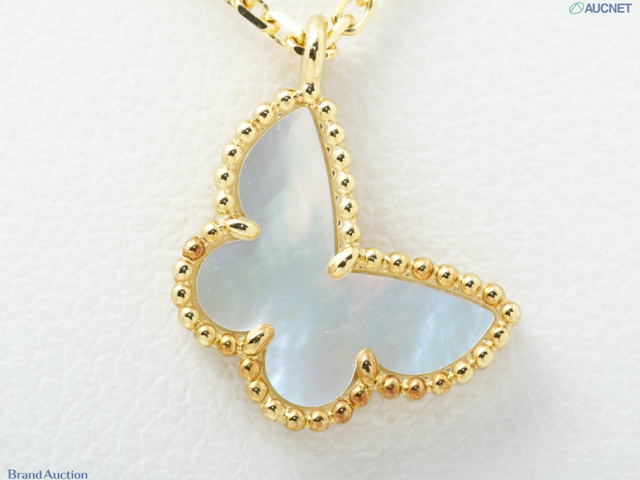 K18YG スウィート パピヨン 蝶モチーフ シェル ネックレス 2.9g