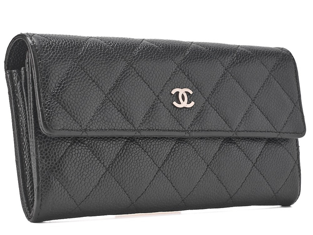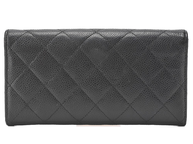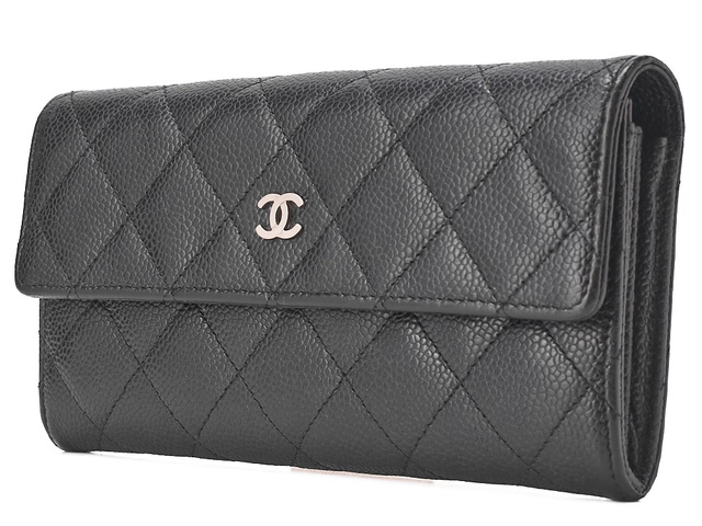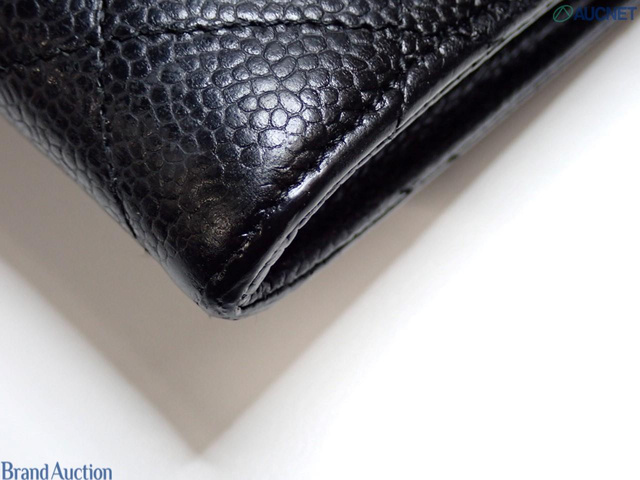 キャビアスキン マトラッセ 2つ折り長財布 黒 SV金具 21番台