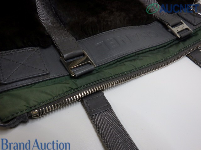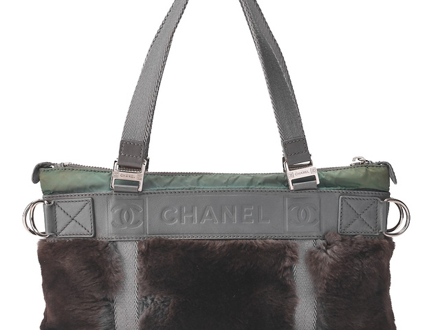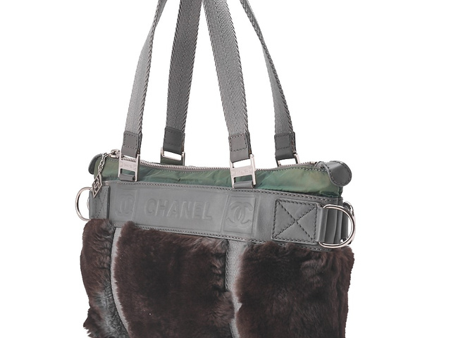 レザー×ファー ロゴマーク ショルダー グレー SV金具 10番台