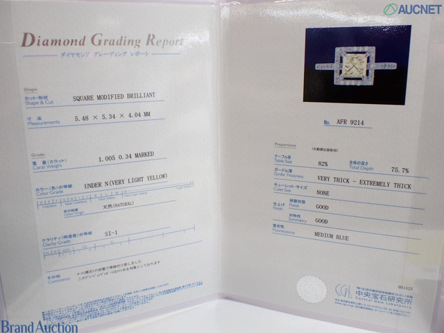 ダイヤモンド PT950 D/1.005/0.34ct 4.1g CGL鑑定書