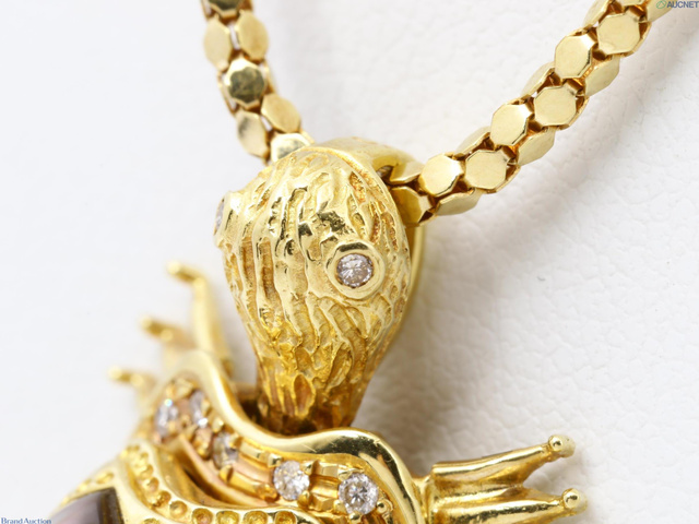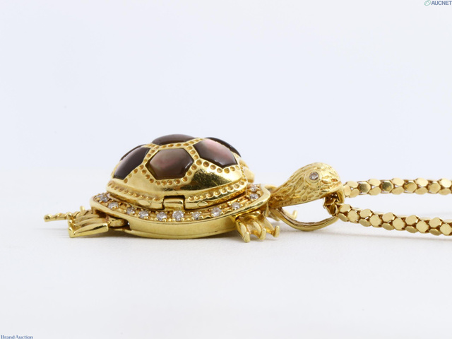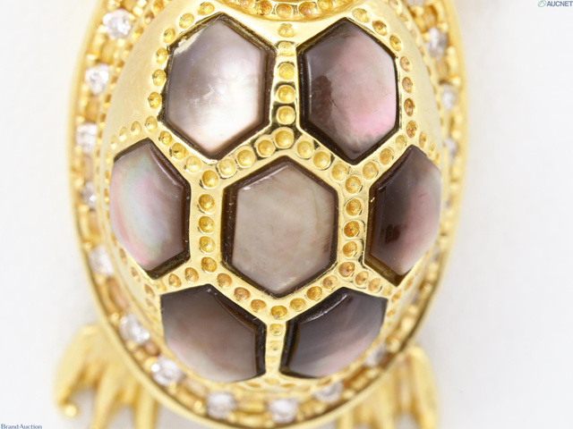 K18 シェル ダイヤ 亀 ネックレス 13.1g 0.18 約50cm