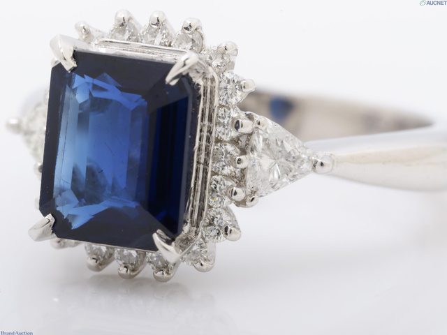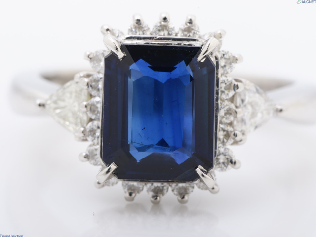Pt900 ダイヤ/サファイアリング S2.12/D0.45/7.6g #11