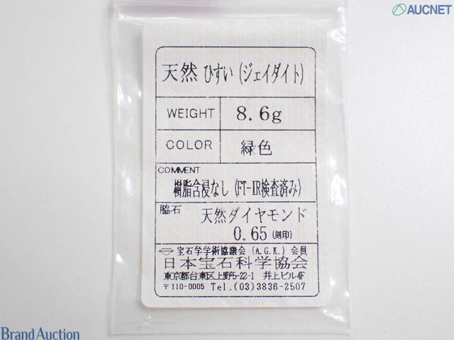 Pt900/K18 ヒスイ 8.6g ダイヤモンド0.65ct